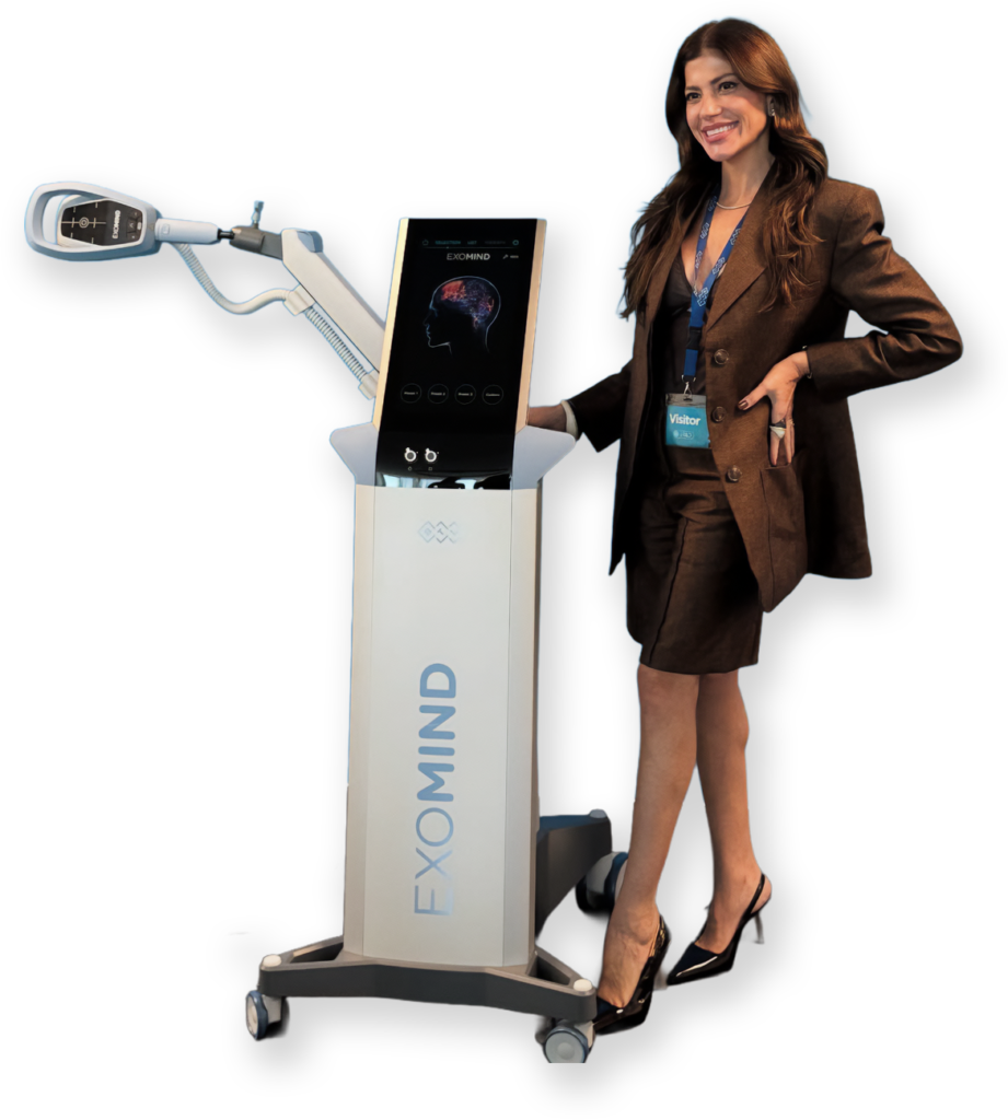 O ExoMind é uma tecnologia inovadora baseada na Estimulação Magnética Transcraniana repetitiva (rTMS). É um tratamento não invasivo, rápido e confortável, que utiliza pulsos magnéticos para equilibrar as emoções, melhorar o sono, reduzir o estresse e aumentar o foco. O tratamento dura cerca de 30 minutos e atua estimulando áreas cerebrais como o córtex pré-frontal, o que ajuda a criar e fortalecer conexões neurais saudáveis.